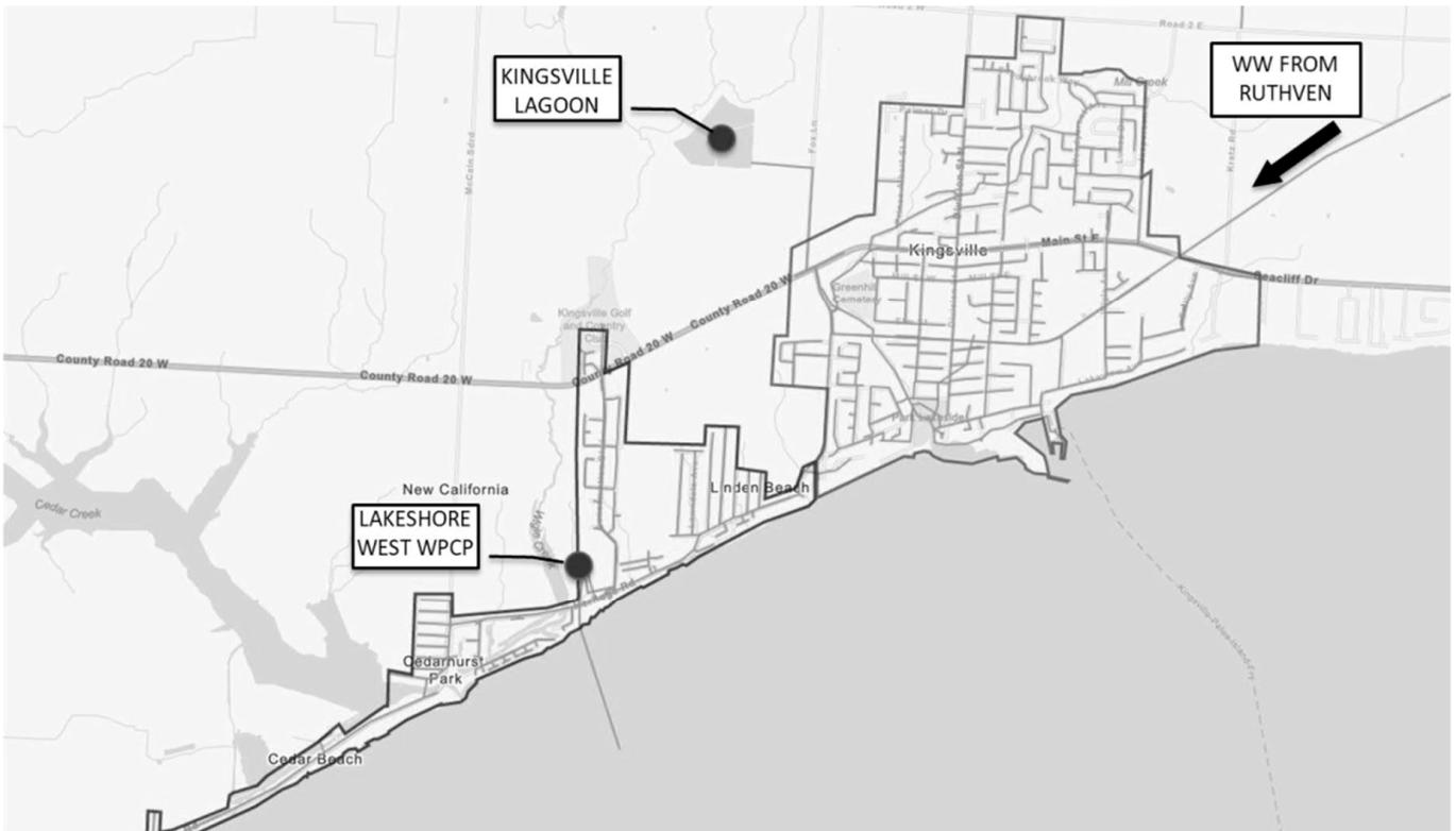 The Town’s Pollution Control Plant and Lagoons service the Town of Kingsville and the community of Ruthven (see Figure 1).